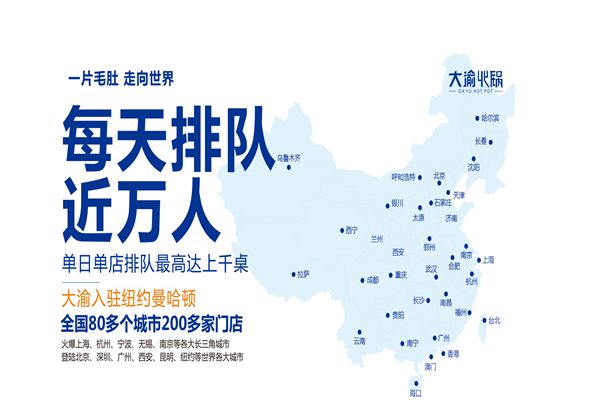大禹餐饮管理有限公司拥有以长三角为中心的大禹火锅、小顺娘、拉萨风、达格鱼虾舞、人气小顺娘、小岭等子品牌,大禹餐饮辐射全国。现在,全国已经建立了200多家直营店和加盟店。大禹火锅2018年正式进入美国市场,一开张,大禹火锅就在长三角引起轰动,并创造了上千人排队吃大禹火锅